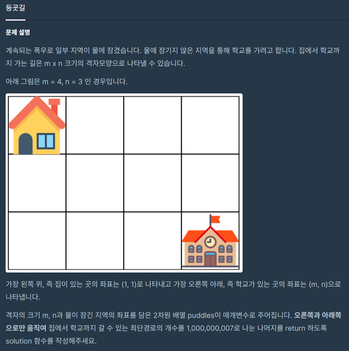 dp[m][n]이 최종 목적지 까지 가는 길의 갯 수가 됨.